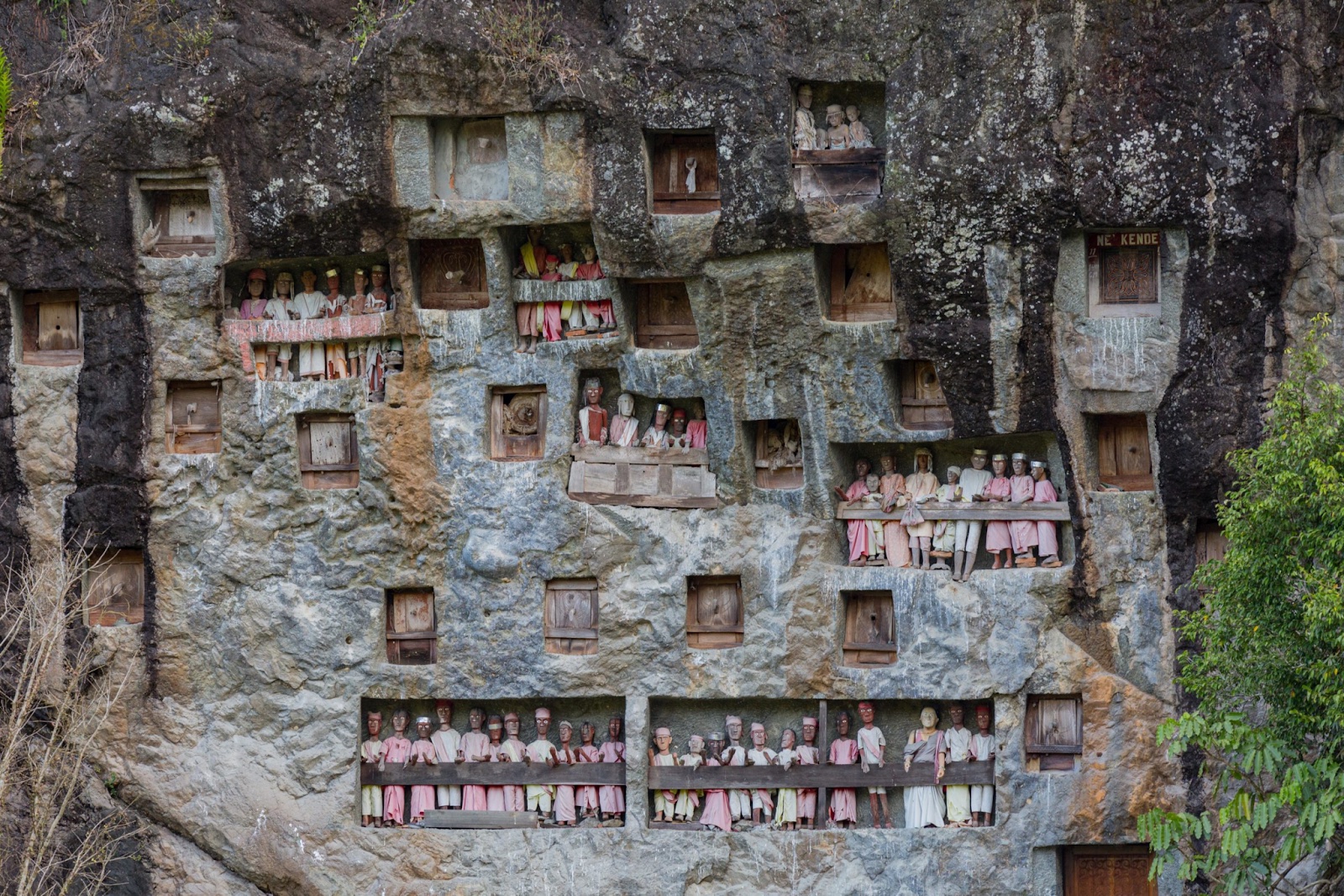 TANA TORAJA: è una reggenza dell’Indonesia, situata nella provincia di Sulawesi Meridionale. È molto celebre per il curioso culto dei morti, mummificati, del popolo dei Toraja, che usa riesumarli ogni anno durante il rito funebre.